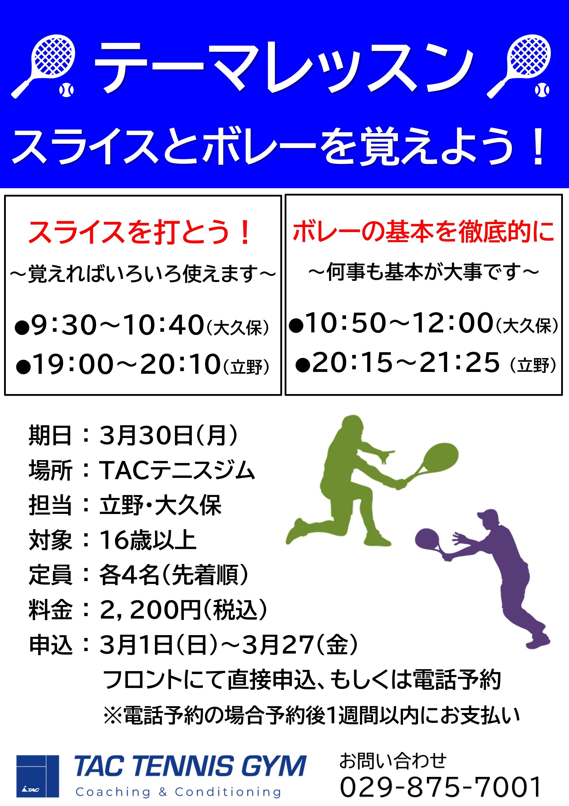 テーマレッスン開催🎾スライスとボレーを覚えよう!