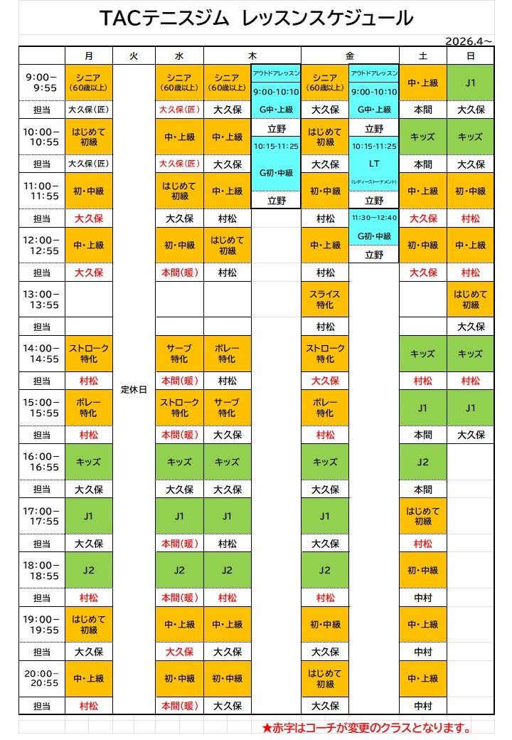 日頃TACテニスジムをご利用いただき、誠にありがとうございます。